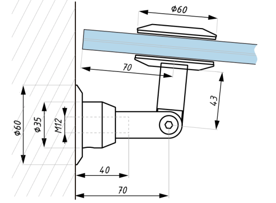 Dolní terč průměru 60mm pro skleněný přístřešek, kotvení stěna-sklo