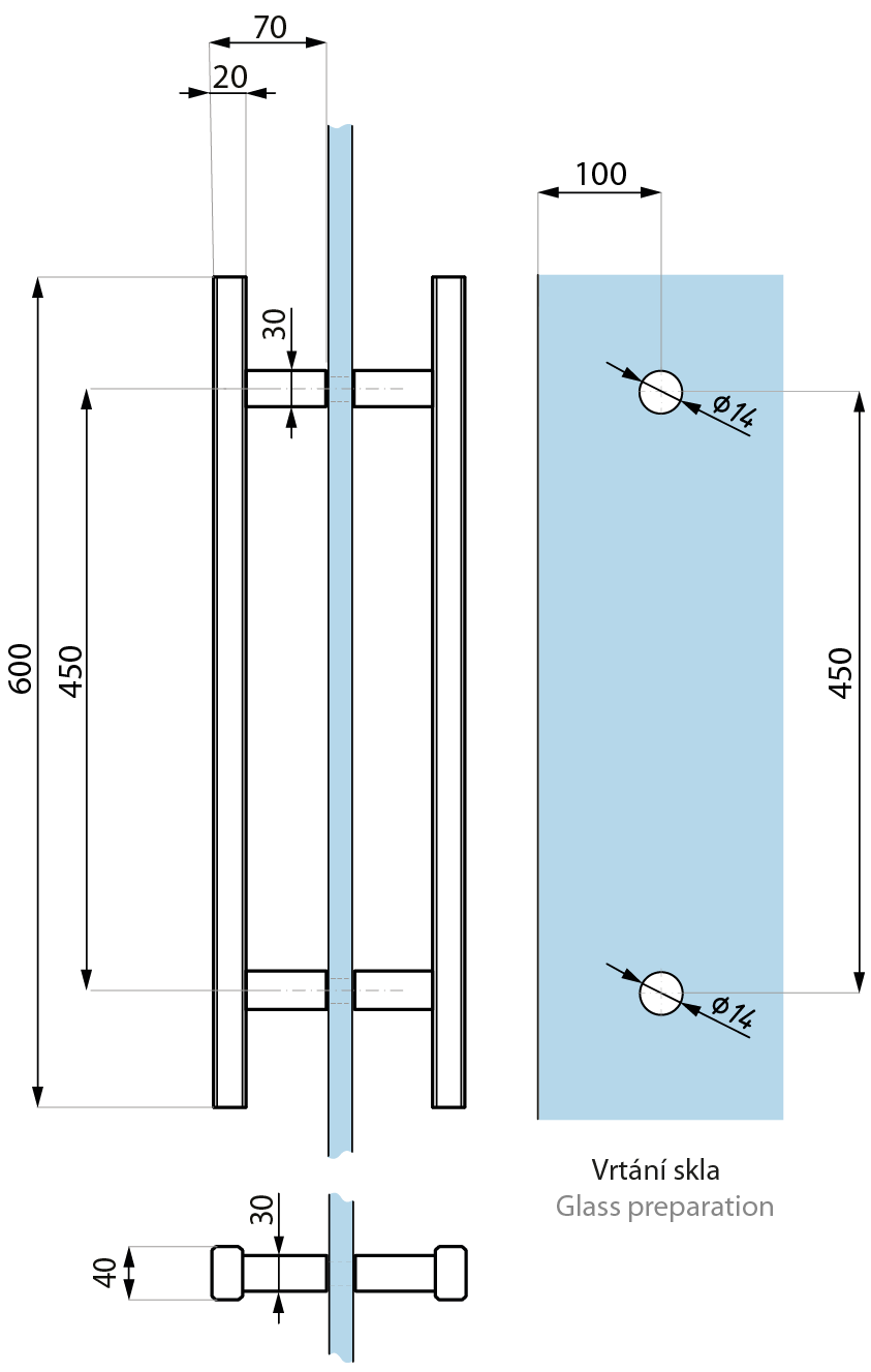 Vrtání skla (Glass drilling): 2x Ø14mm
