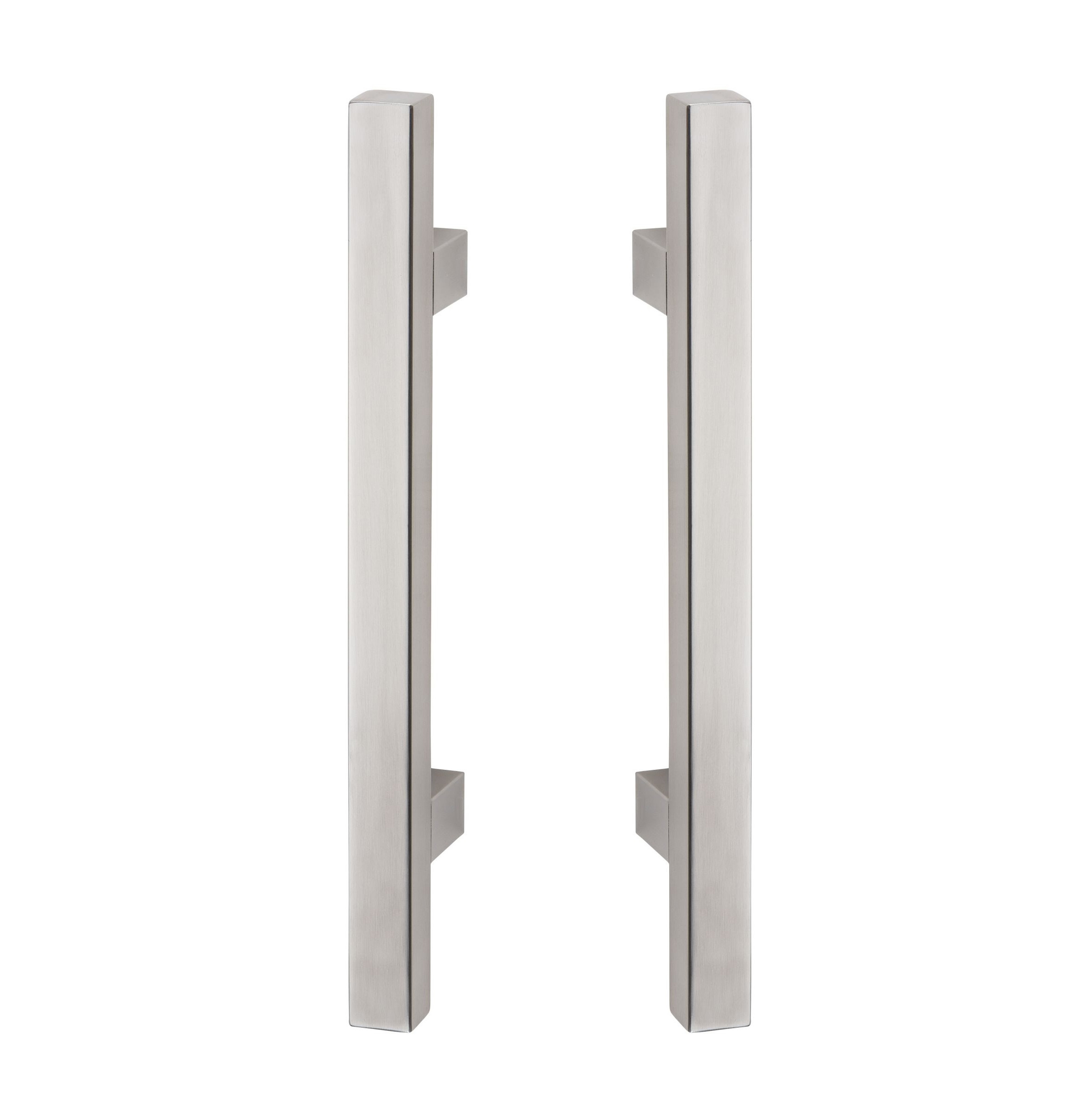 Párové nerezové madlo na celoskleněné/dřevěné dveře, úchopová část o průřezu 25x25mm v délce 1200mm, rozteč 900mm. (včetně montážního příslušenství)