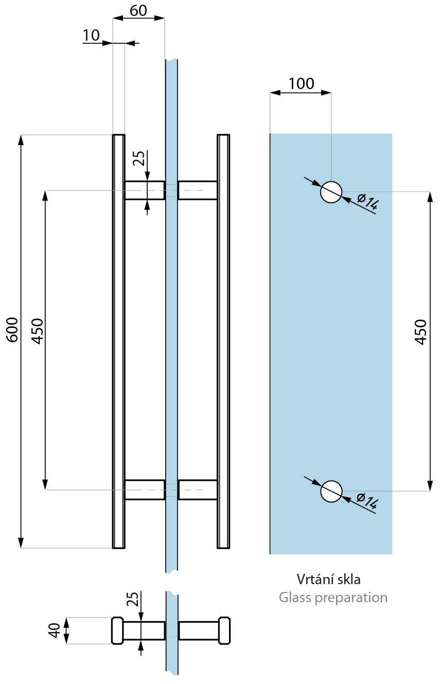 Vrtání skla (Glass drilling): 2x Ø14mm
