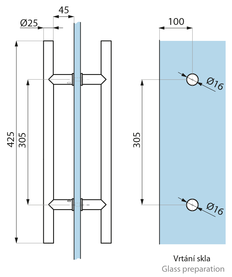 Vrtání skla (Glass preparation): 2x Ø16mm