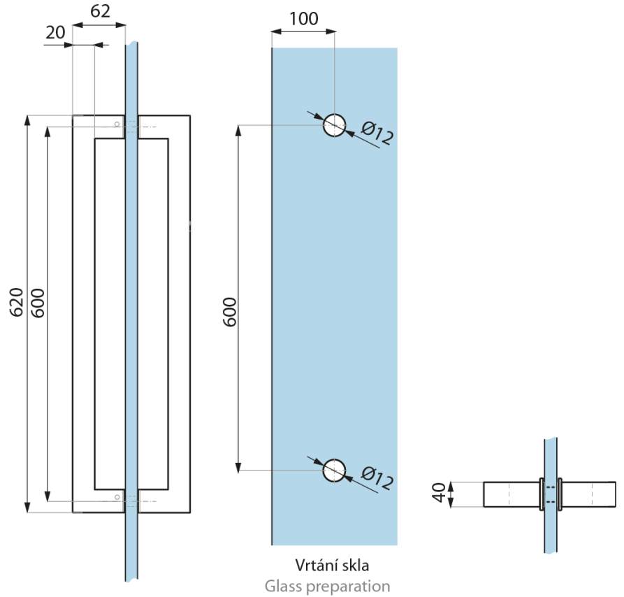 Vrtání skla (Glass drilling): 2x Ø12mm