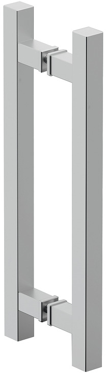 Párové hliníkové hranaté madlo na celoskleněné i dřevěné dveře, úchopová část o ⍁ 25 mm v délce 400mm, rozteč 300mm.