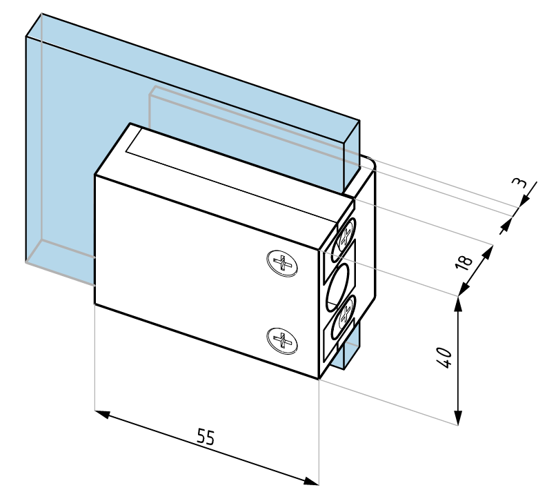 Protikus zámku US627 na sklo pro skleněná dveřní křídla. Svorné uchycení, bez výřezu ve skle.