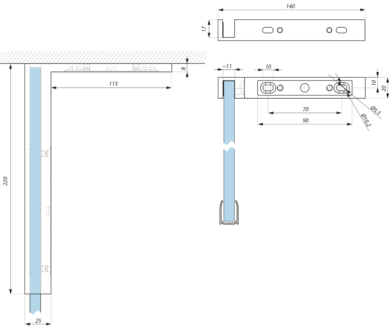 Stabilizační rohovník nahrazuje rozpěrné tyče, jako výztuha fixních skel v provedení sklo-zeď 90°