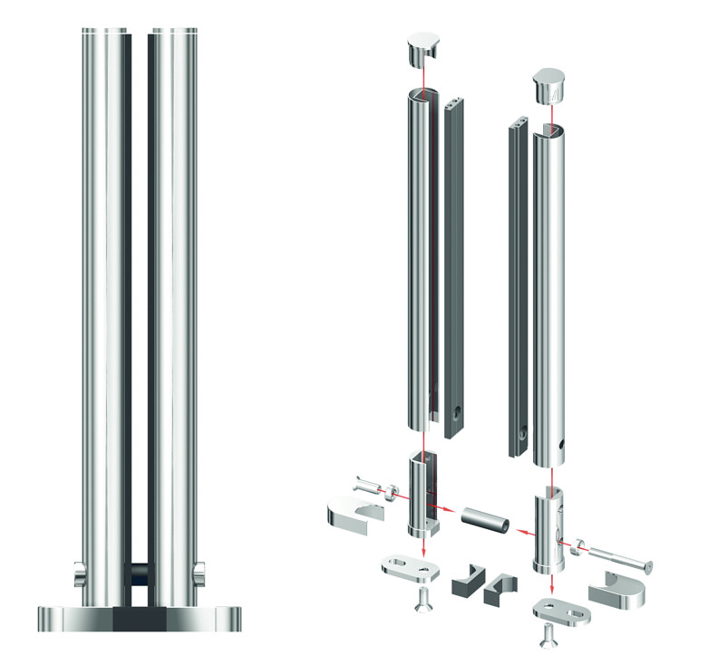úchyt pro skleněná zábradlí (konstrukce) bez nutnosti vrtání do skla .