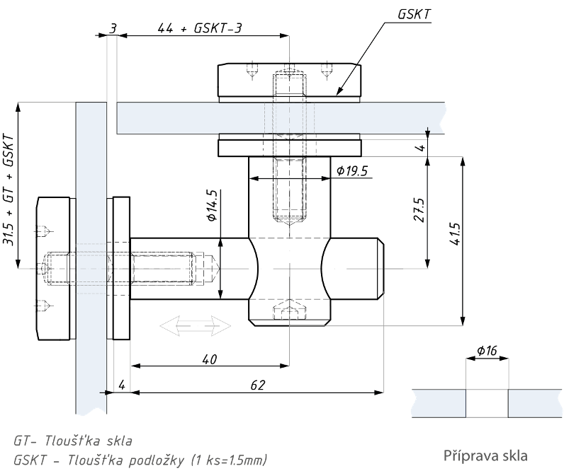 - k uchycení panelů z jednoduchého (ESG) nebo lepeného skla (VSG)