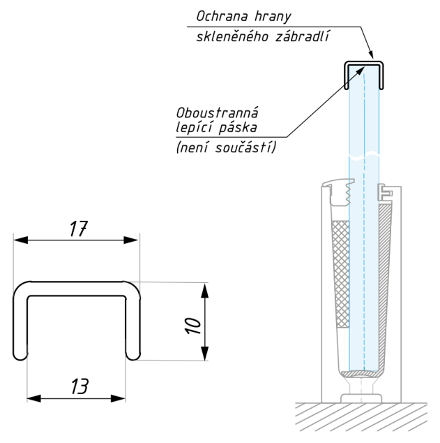 Hliníkové madlo tvaru C pro skleněná zábradlí