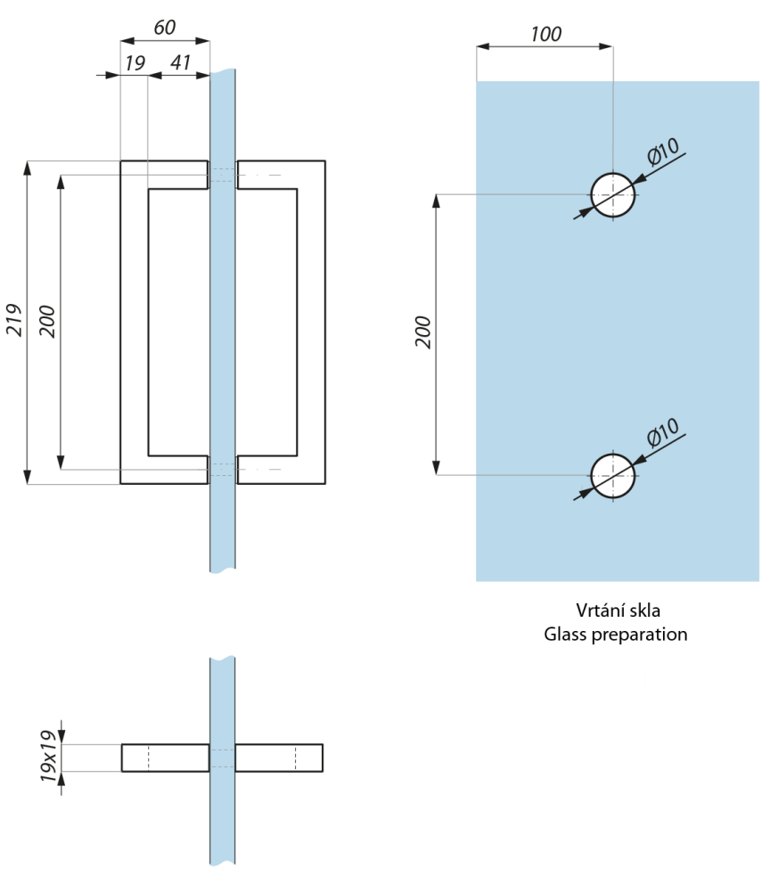 Vrtání skla (Glass drilling): 2x Ø10mm