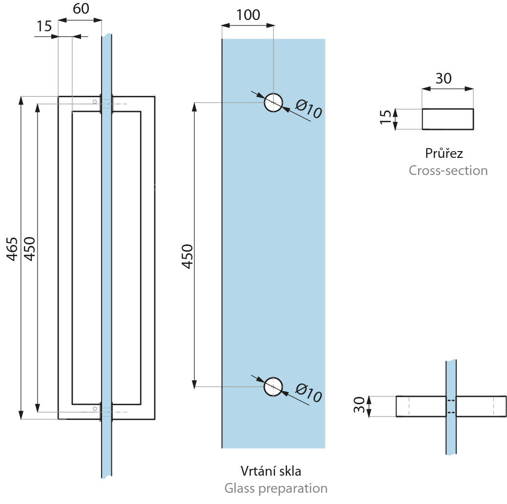 Vrtání skla (Glass drilling): 2x Ø10mm