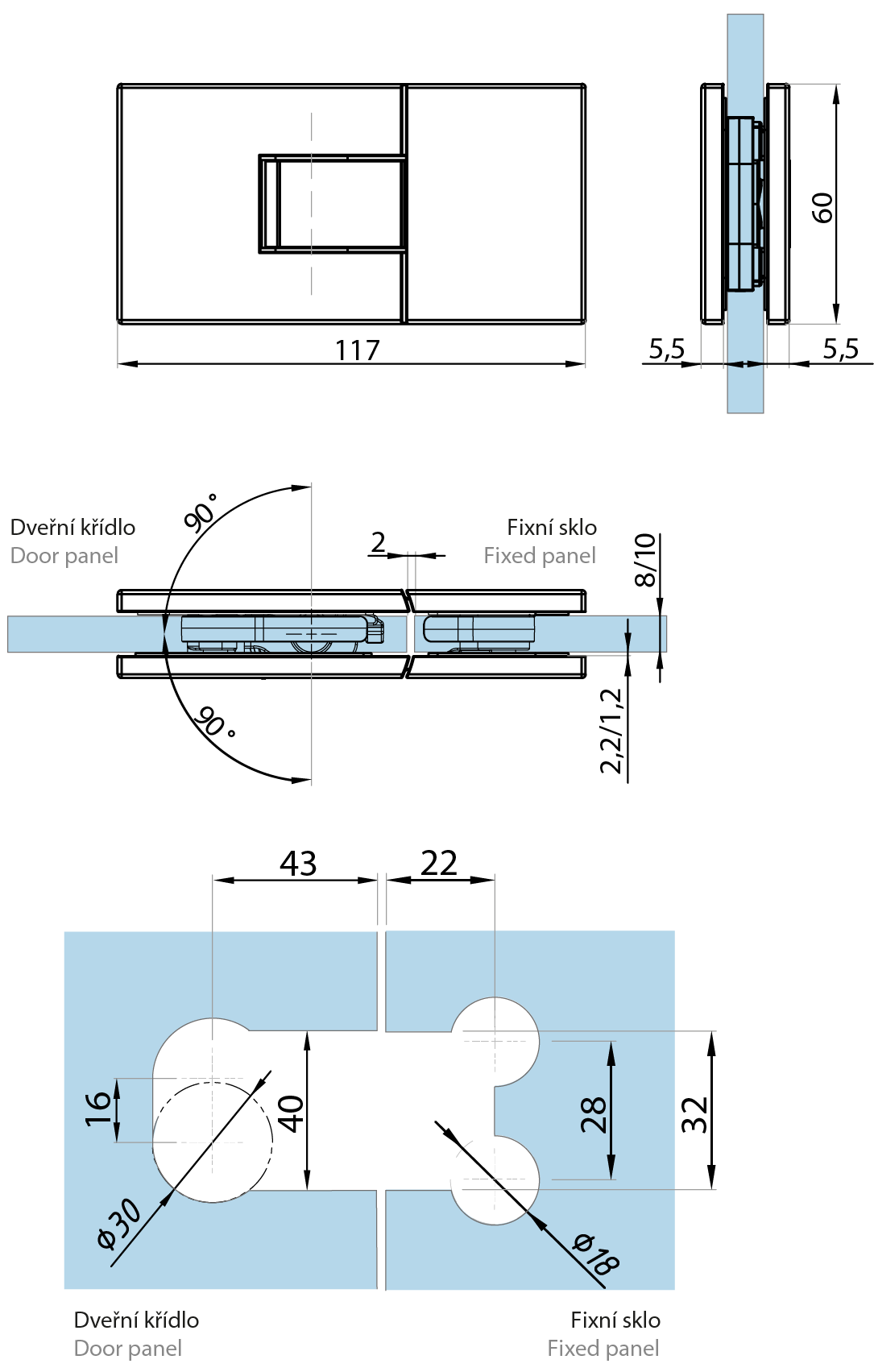 Pro sílu skla(For glass thickness): 6/8/10 mm
