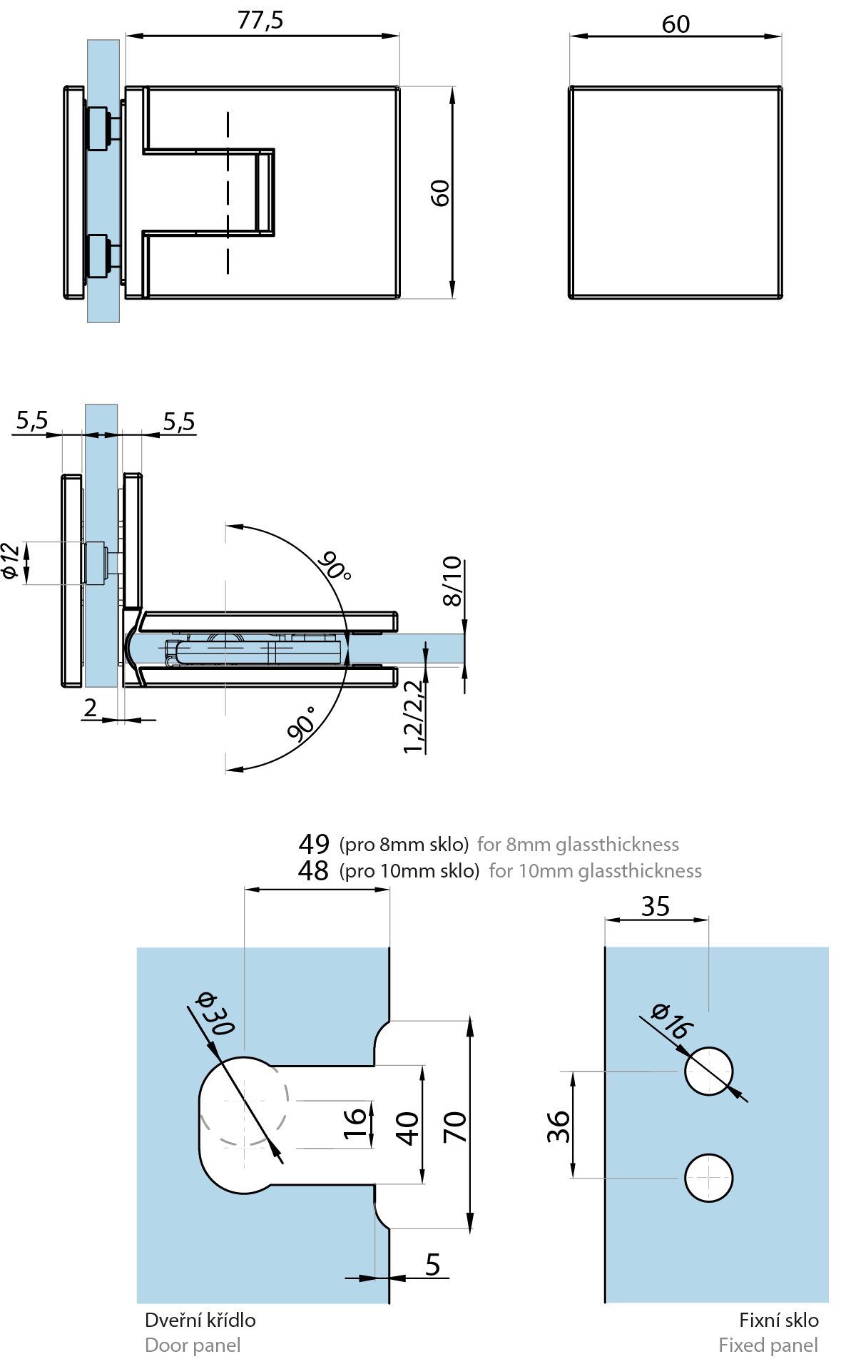 Pro sílu skla(For glass thickness): 6/8/10 mm