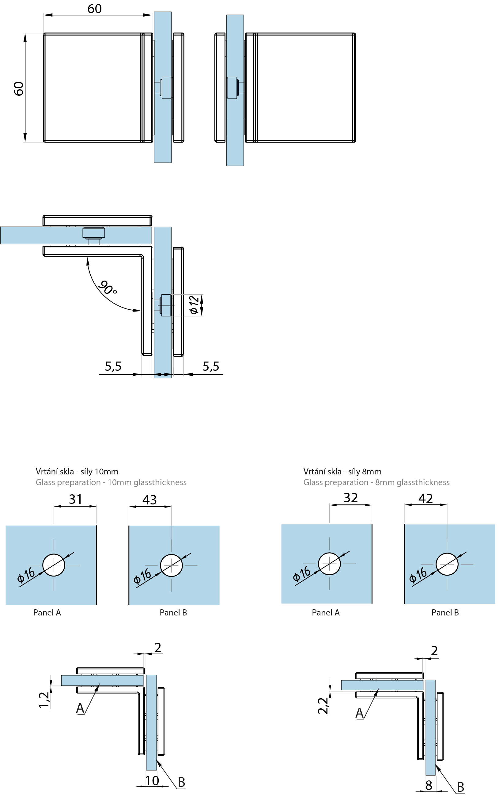Pro sílu skla(For glass thickness): 6/8/10 mm