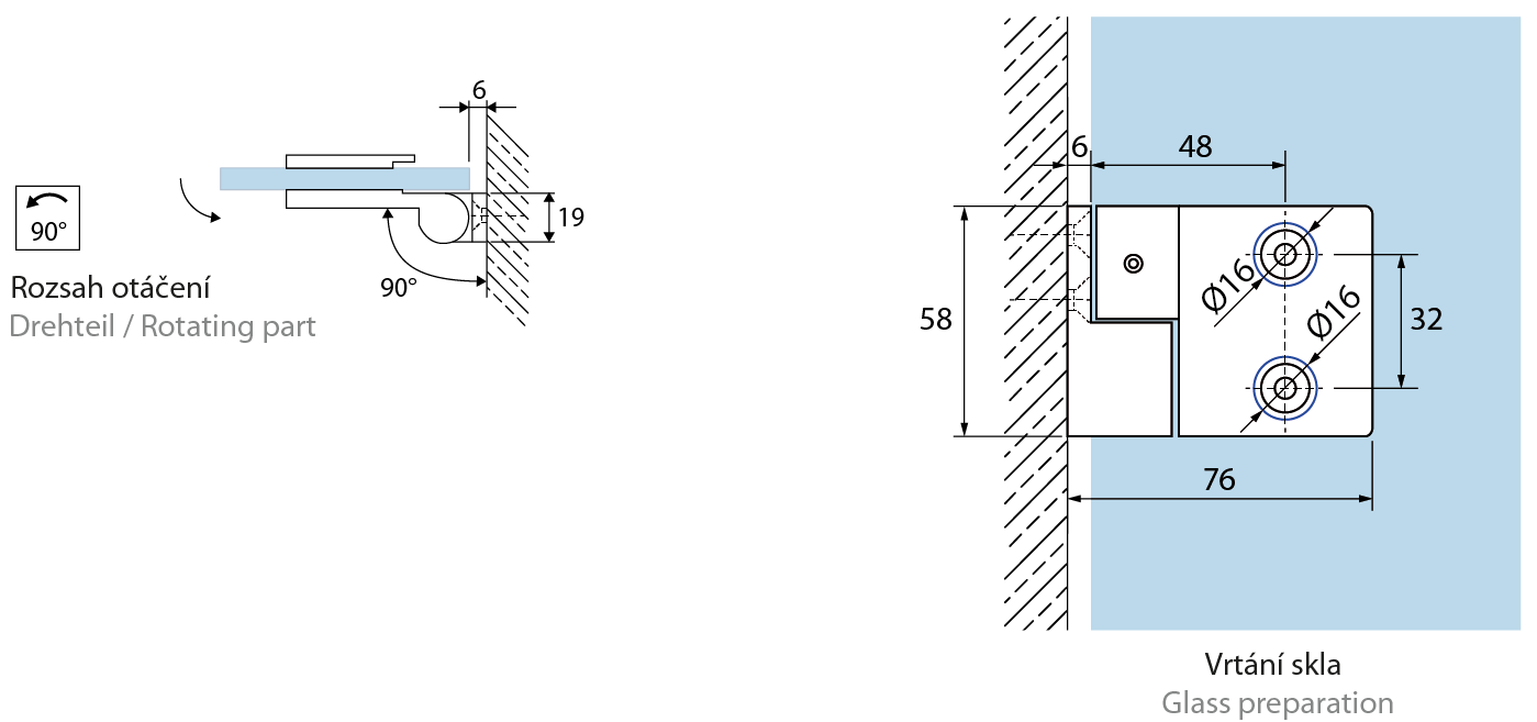Pro sílu skla (For glass thickness/Glasstärke): 6 / 8 /10 mm
