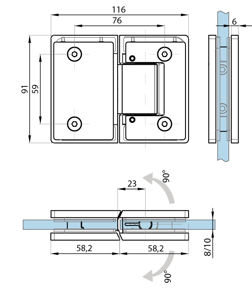 Pro sílu skla(For glass thickness): 8-10 mm