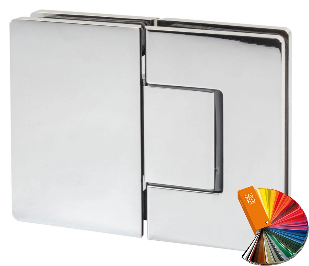 EN: Hinges glass to glass 180° with the selfclosing spring mechanism from 25° to 0° and the angle adjustment ±10° in the closing position