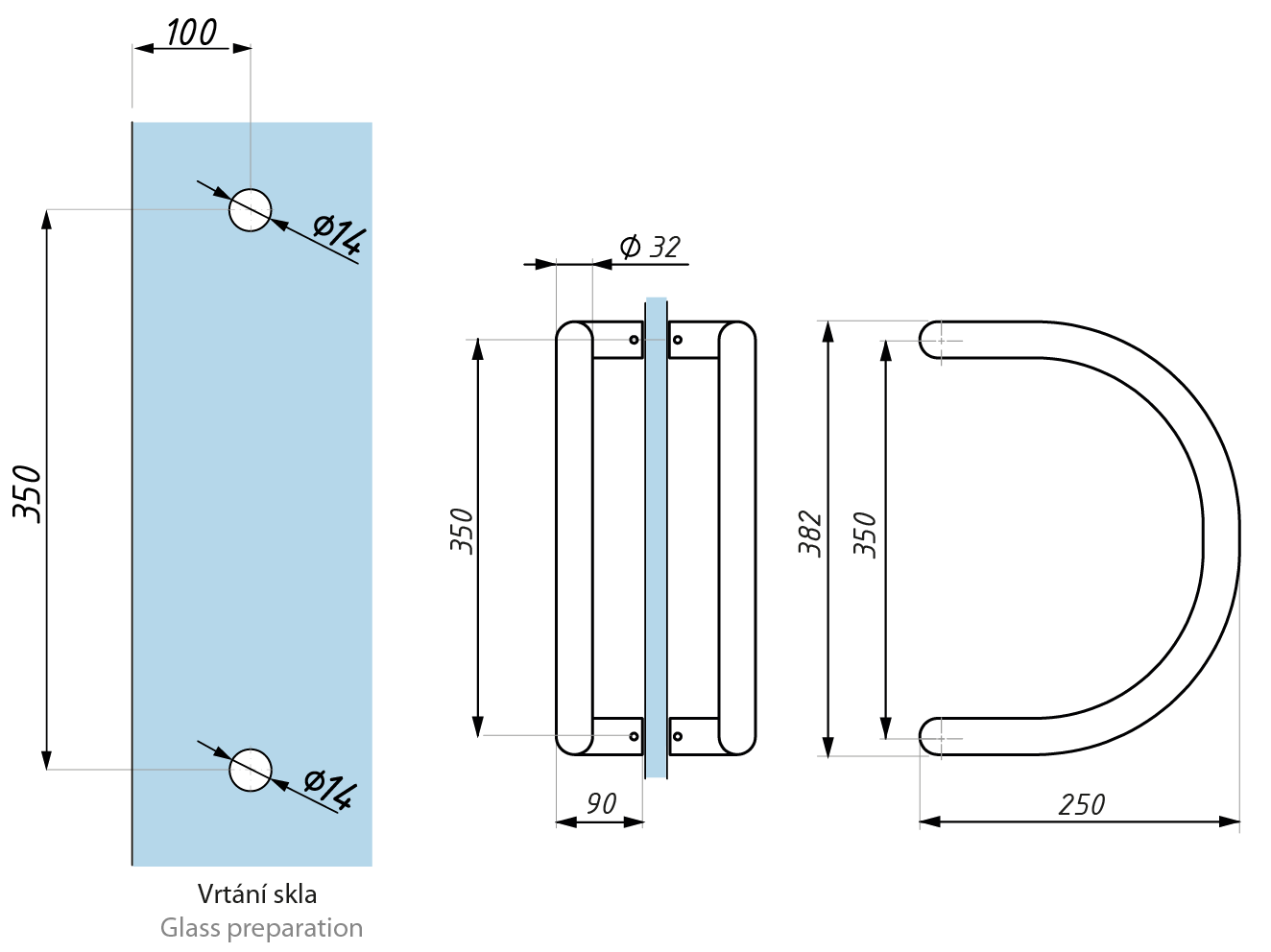 Vrtání skla (Glass preparation): 2x Ø14mm