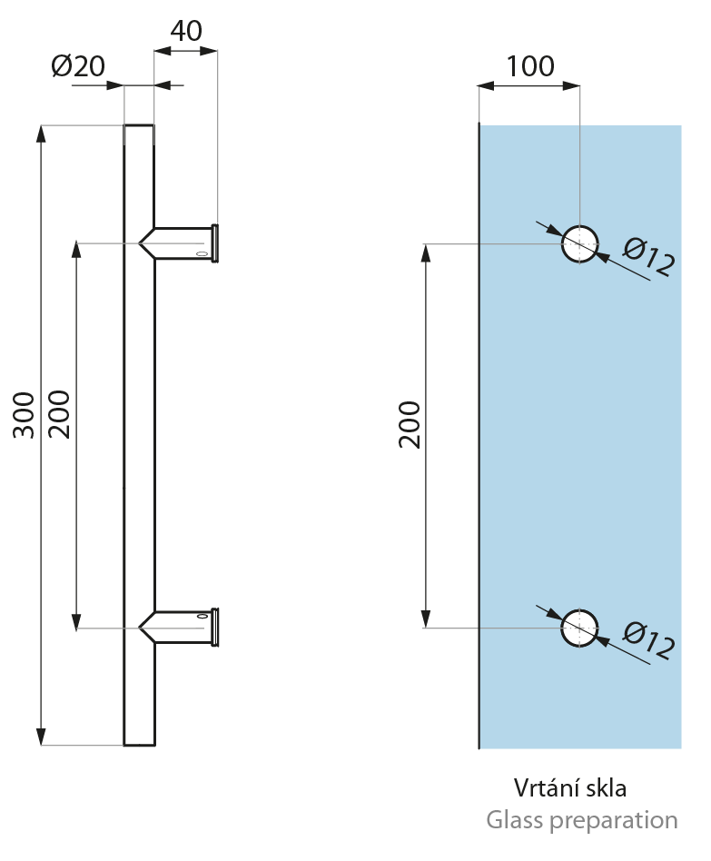 Vrtání skla (Glass drilling): 2x Ø12mm