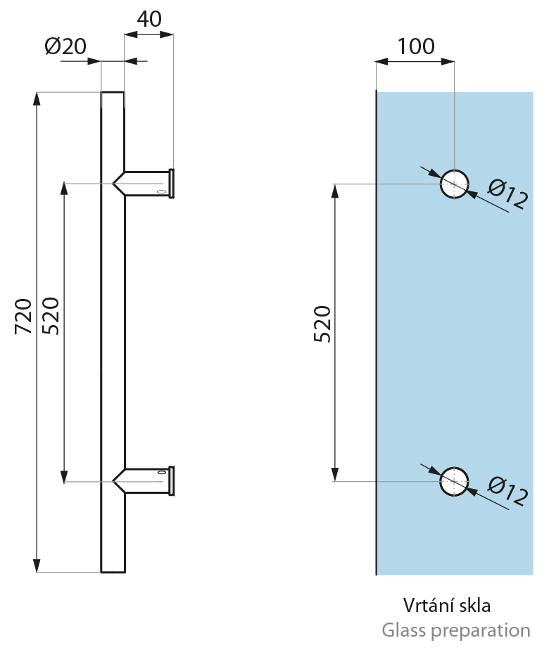 Vrtání skla (Glass drilling): 2x Ø12mm