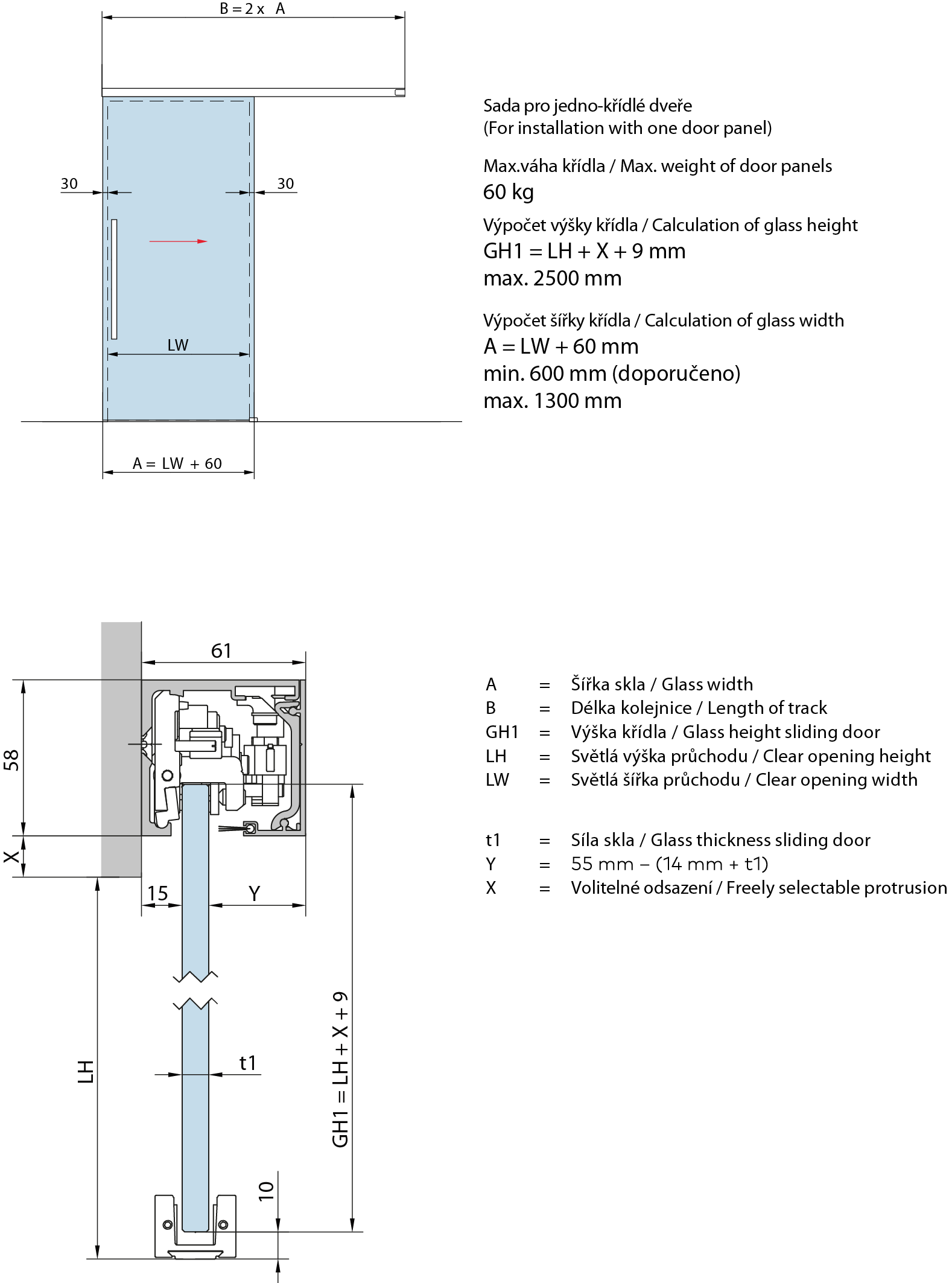 Max.váha dveřního křídla (Max.weight of door leaf): 60 kg