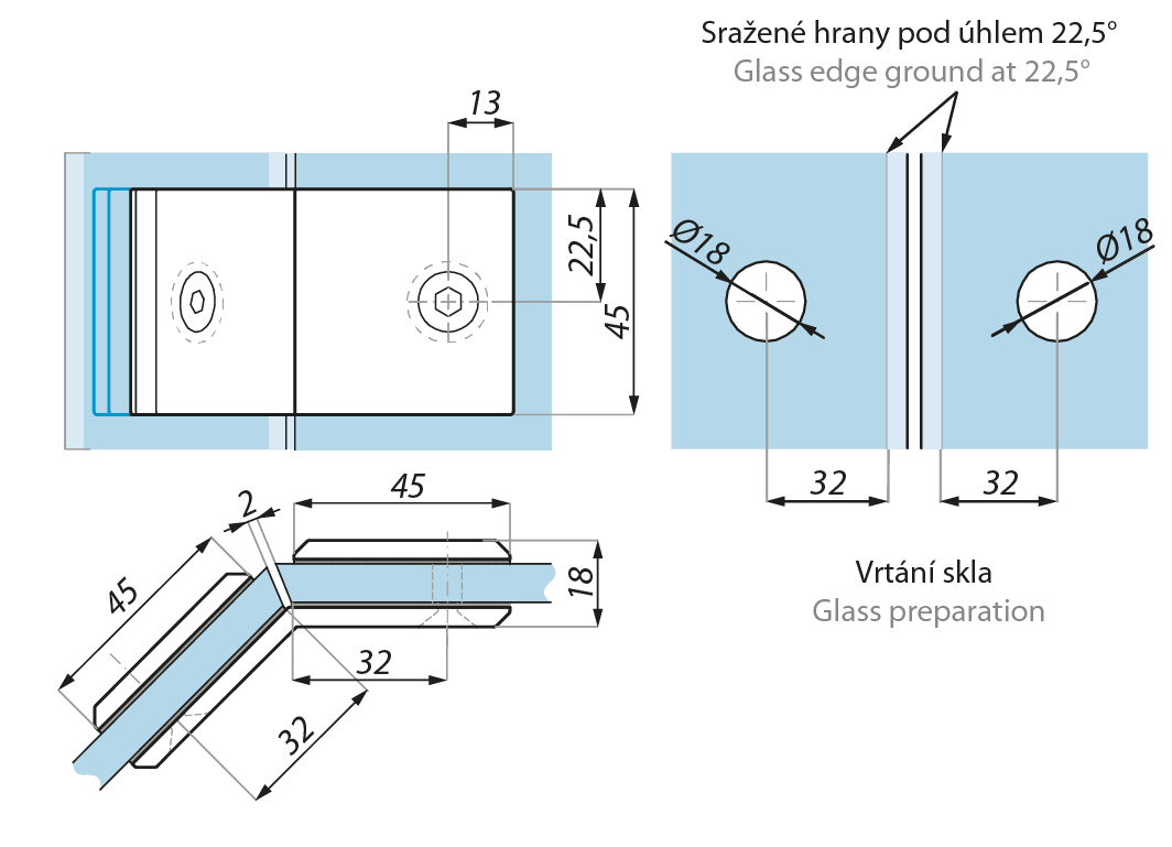 PM GX990 spojka 135° sklo-sklo Černá matná