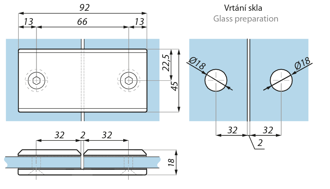 - PM GX990 spojka 180° sklo-sklo Černá matná