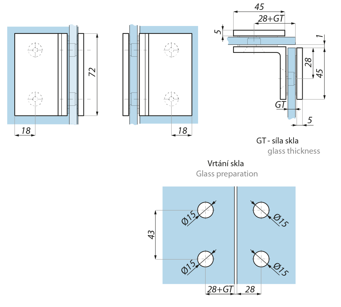 Pro sílu skla (For glass thickness): 6/8/10 mm