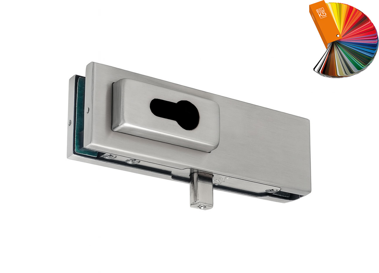 Rohový zámek na skleněné otočné dveře s přípravou pro FAB vložku (není součástí balení).