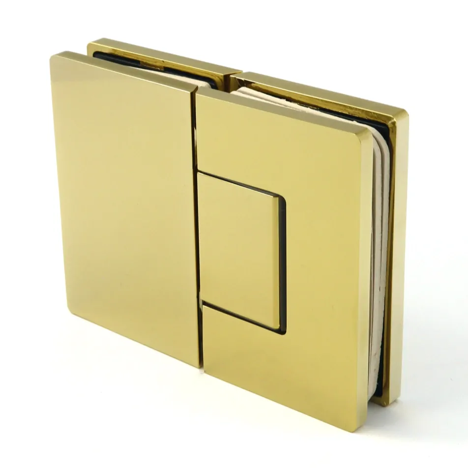 (Hinges glass to glass 180° with the selfclosing spring mechanism from 25° to 0° and the angle adjustment ±10° in the closing position, invisible screws)