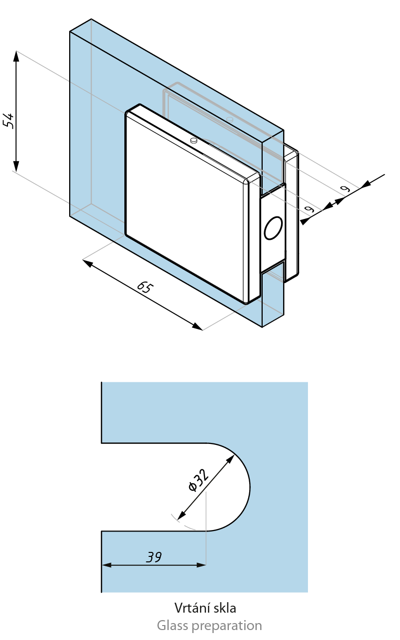 Pro sílu skla (For glass thickness): 8/10/12 mm
