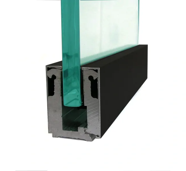 Svěrný profil s přítlačnými kameny pro svorné uchycení fixních skel bez nutnosti vrtání skla