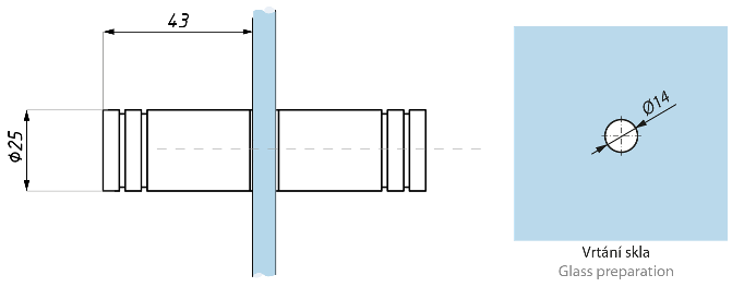 Párový nerezový úchyt o průměru Ø25 na skleněné dveře a sprchové kouty s tloušťkou skla 8/10/12 mm.