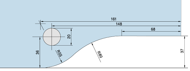 Vrtání skla (Glass drilling): 2x Ø12mm, rozteč (Pitch) 200mm