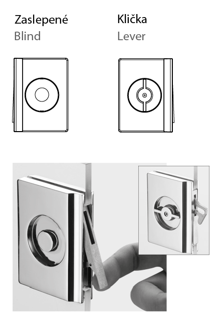 Určeno pro posuvné skleněné dveře a dveře do pouzdra, úchyt disponuje výklopnou páčkou a možností zamknutí