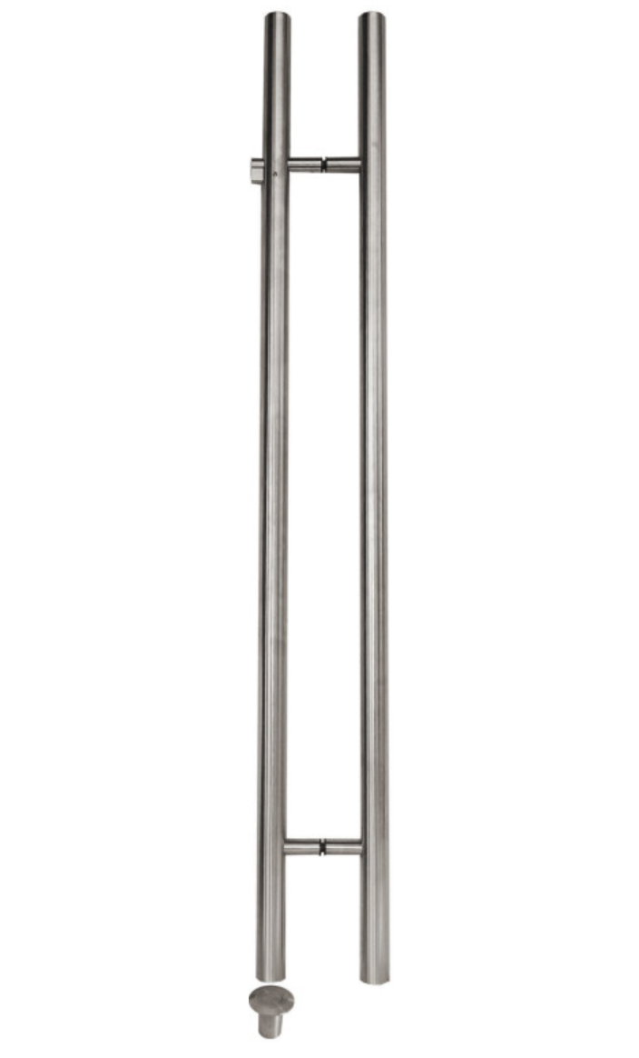 Párové nerezové madlo jednostranně uzamykatelné (FAB vložka není součástí). Průměr madla 35mm, délka 1200mm na skleněné dveře s tloušťkou skla 8/10/12 mm.