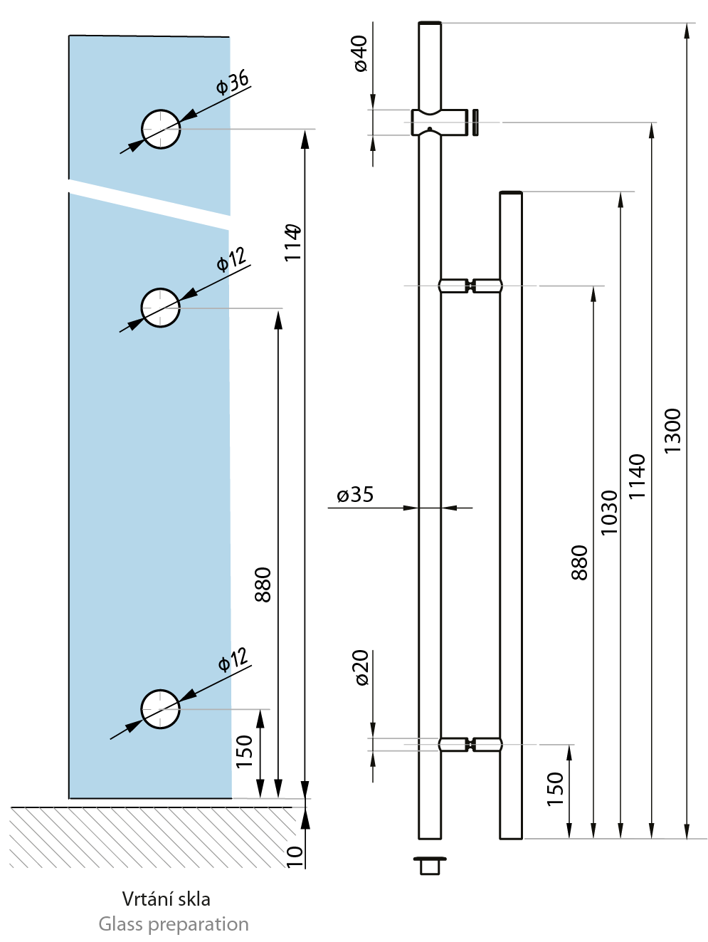 Madlo délky 1300/1030mm / Pull Handle back-to-back